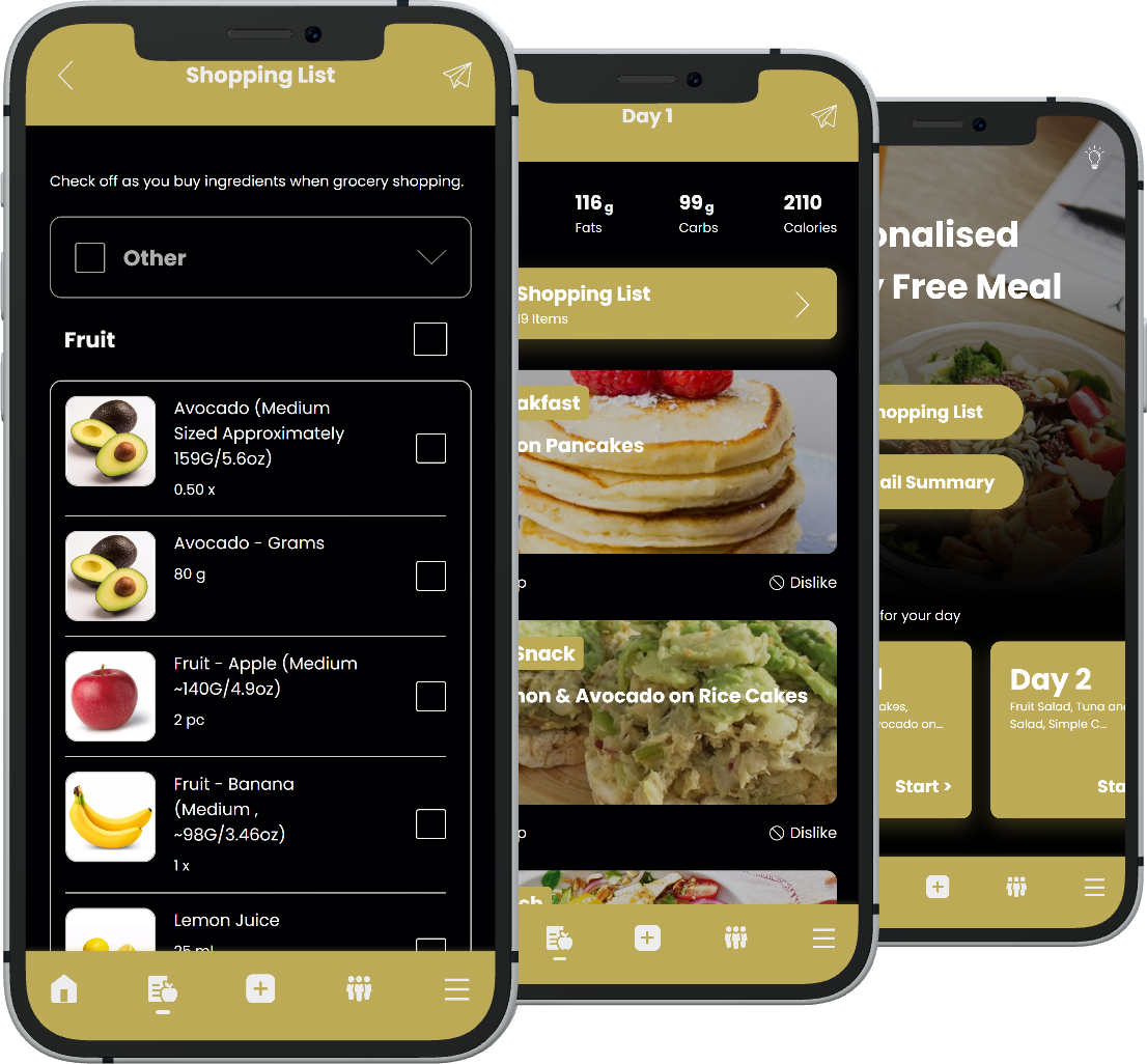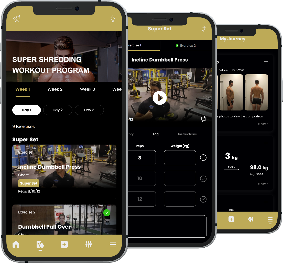 Fully customised training & meal plans customised to YOU & YOUR goals as well as your schedule and lifestyle which will be updated every month based on your progress. Choose from General, Vegetarian, Vegan, Dairy Free, Gluten Free meals and more!