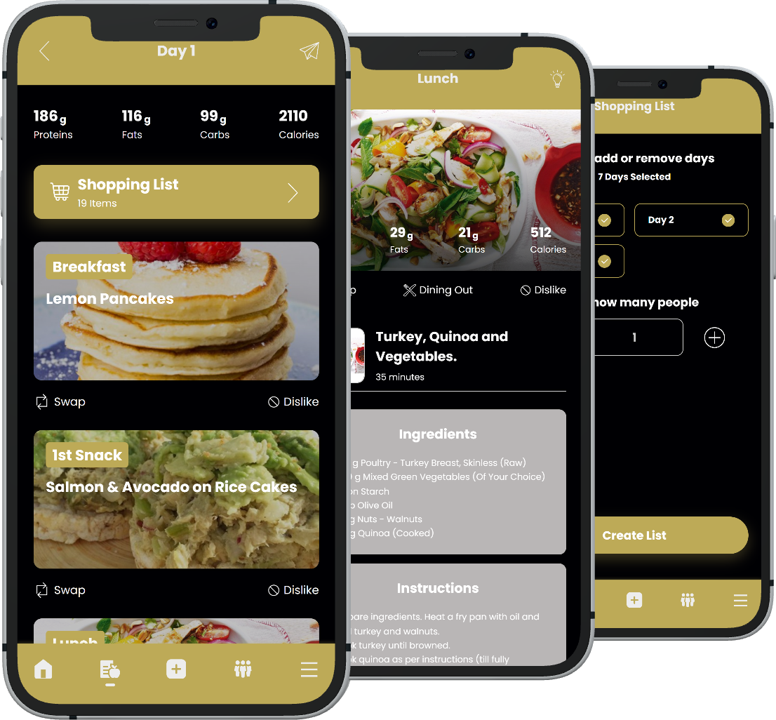 Want to dine in/out while still hitting your goals? Choose from your favourite restaurants and even combine meals to hit your macro and calorie targets!